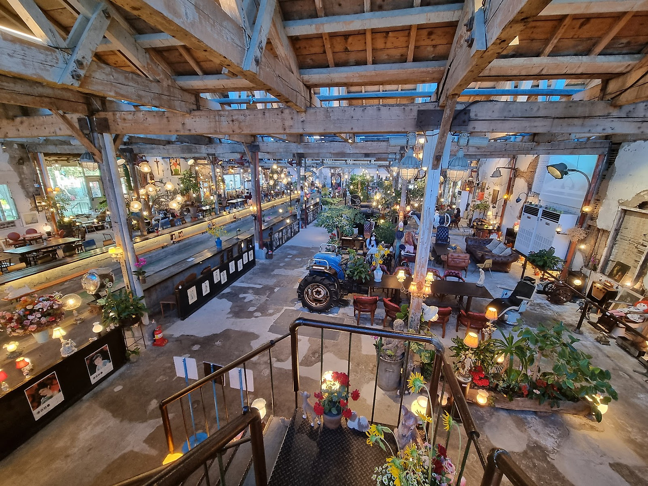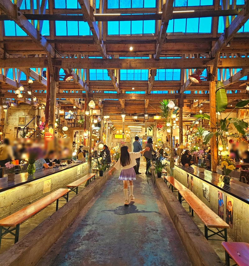 조양 방직 내부는 넓고 아늑한 분위기로, 다양한 식물과 조명이 어우러져 따뜻한 느낌을 줍니다. 이곳에서는 친구들과의 소중한 시간을 보내거나, 가족과 함께 여유로운 시간을 즐기기에 적합합니다.