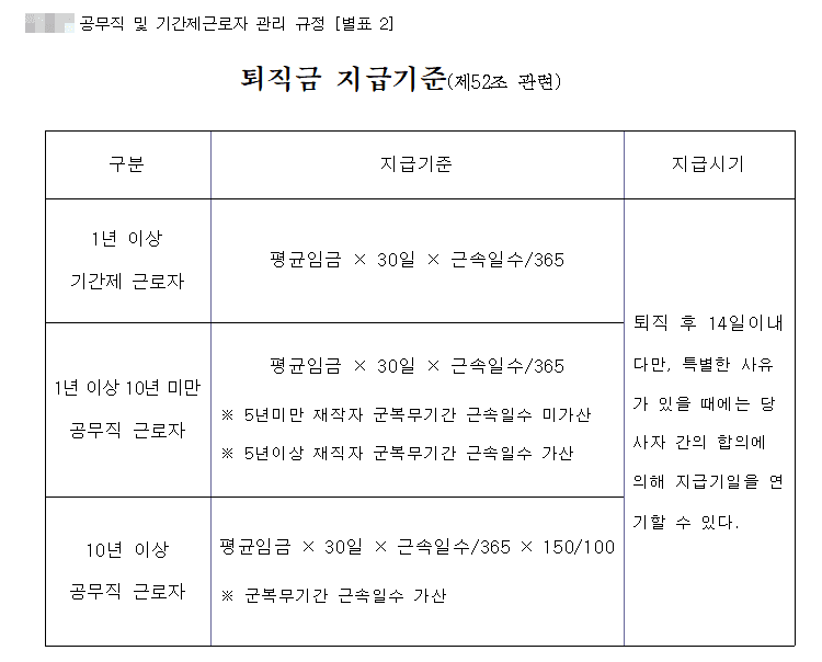 공무직의 퇴직금은 근무 연수에 따라 달라지며, 평균 급여에 근거하여 계산됩니다.