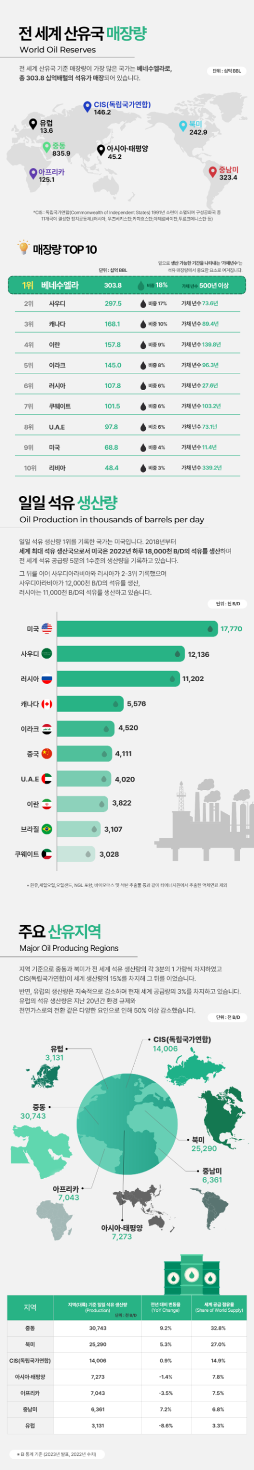 결론적으로, 석유 매장량과 생산량은 각국의 경제와 정치에 큰 영향을 미치며, 앞으로의 에너지 정책에 따라 석유 산업의 방향이 달라질 것입니다.