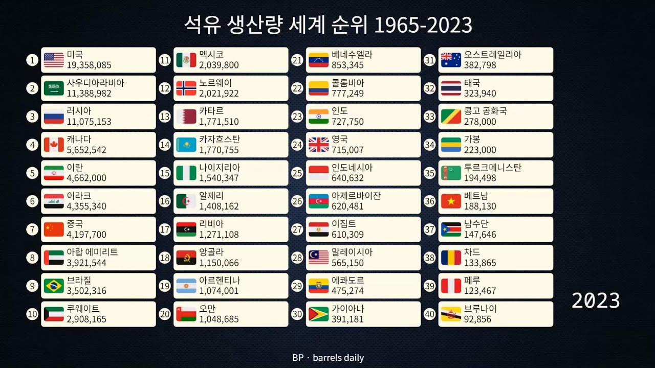 각국의 석유 매장량이 많다고 해서 반드시 생산량이 높은 것은 아닙니다. 2023년 기준으로 가장 많은 석유를 생산하는 국가는 다음과 같습니다.