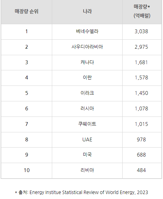 2023년 기준으로 세계 석유 매장량이 가장 많은 국가는 다음과 같습니다.