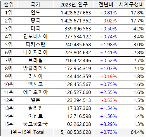 2023년 세계에서 가장 인구가 많은 나라 순위