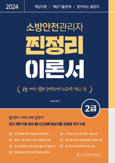 - 소방안전관리자 진정리 이론서 (2024): 이 책은 소방안전관리자 시험 준비에 필요한 이론과 문제를 포함하고 있습니다.