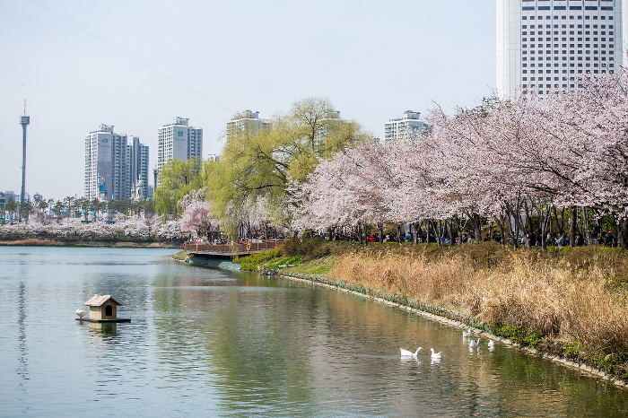 석촌호수의 아름다움은 그 자체로도 감탄을 자아냅니다. 호수 주변에는 아름다운 나무들이 늘어서 있어, 특히 봄철에는 벚꽃이 만개하여 환상적인 풍경을 만들어냅니다. 여름에는 푸르른 나무 그늘 아래에서 시원한 바람을 느끼며 산책할 수 있고, 가을에는 단풍이 물들어 더욱 화려한 경치를 선사합니다. 겨울철에는 호수 위에 얼음이 얼어, 겨울의 정취를 느낄 수 있는 특별한 경험을 제공합니다.