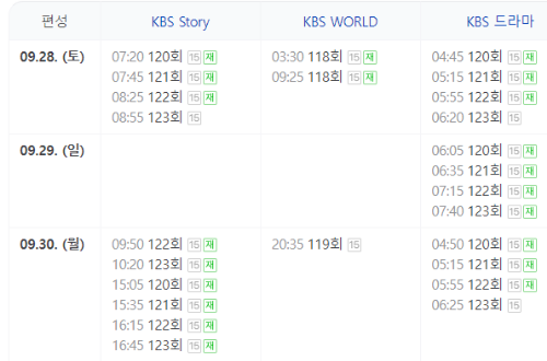 9월29일 일요일 오전 7시 40분 KBS 드라마