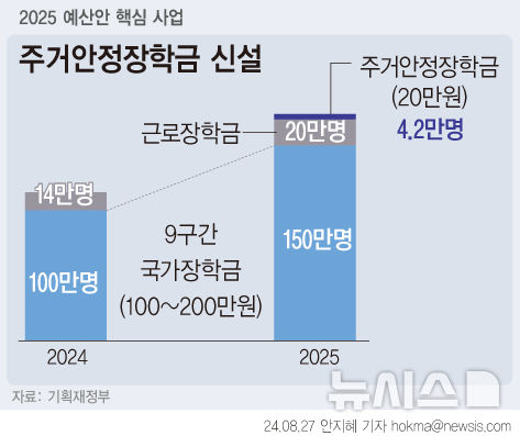 2024년에는 약 100,000명이 주거안정장학금을 지원받을 것으로 예상되지만, 2025년에는 이 수가 150,000명으로 증가할 것으로 보입니다.