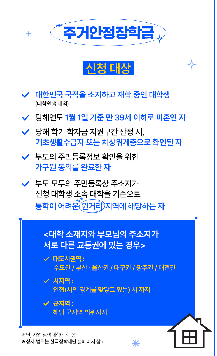 주거안정장학금 지원 대상 및 조건