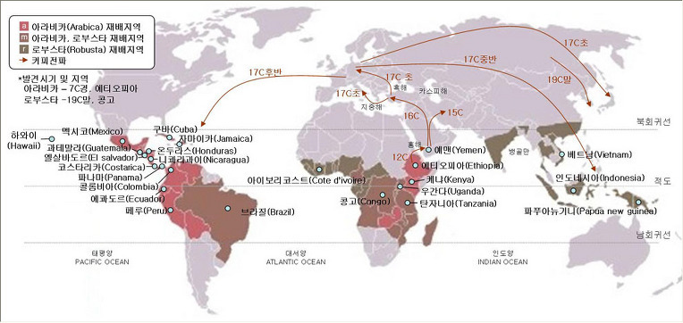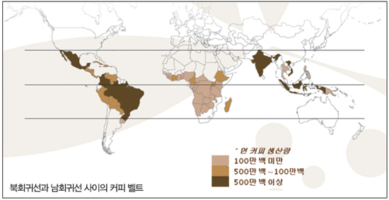 커피는 '커피 벨트'라고 불리는 열대 지역에서 주로 재배됩니다. 이 지역은 적도 주변으로, 아프리카, 아시아, 남미의 여러 나라가 포함됩니다. 주요 커피 생산국으로는 브라질, 콜롬비아, 베트남, 에티오피아 등이 있습니다. 이들 국가는 각각의 기후와 토양 조건에 따라 독특한 커피를 생산합니다.